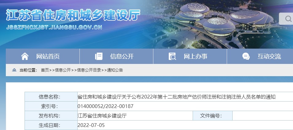 江蘇關(guān)于公布2022年第十二批房地產(chǎn)估價(jià)師注冊(cè)和注銷注冊(cè)人員名單通知