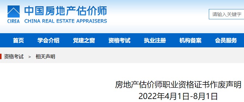 點此下載:房地產估價師職業(yè)資格證書作廢聲明匯總2022年4月1日-8月1日(附件下載)