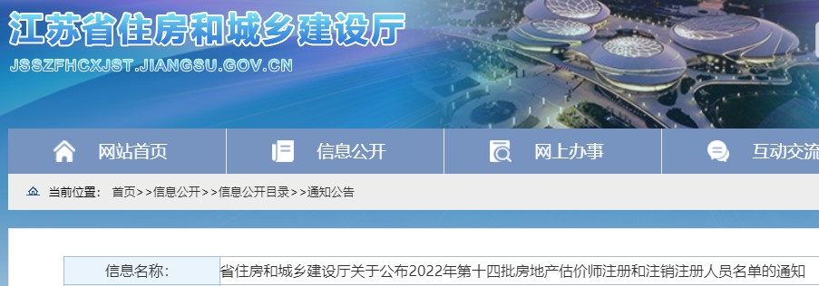 江蘇關(guān)于公布2022年第十四批房地產(chǎn)估價(jià)師注冊(cè)和注銷(xiāo)注冊(cè)人員名單通知