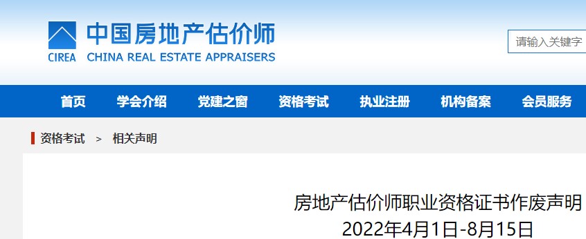 中房學(xué)房地產(chǎn)估價師職業(yè)資格證書作廢聲明(4月1日-8月15日)