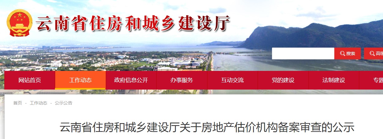 ?云南省住房和城鄉(xiāng)建設(shè)廳關(guān)于房地產(chǎn)估價(jià)機(jī)構(gòu)備案審查公示