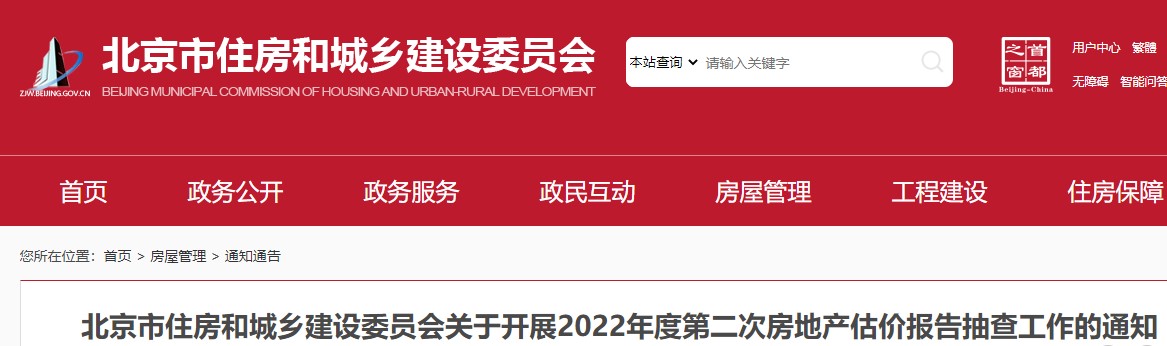 北京市住房和城鄉(xiāng)建設(shè)委員會關(guān)于開展2022年度第二次房地產(chǎn)估價報告抽查工作的通知