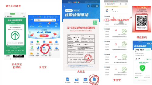(6)考試前請(qǐng)?zhí)顚懞每荚囄募郊?的《疫情防控承諾書》,配合工作人員做好掃碼登記和測(cè)溫。經(jīng)現(xiàn)場(chǎng)核驗(yàn),“遼事通健康碼”“通信大數(shù)據(jù)行程卡”核酸檢測(cè)報(bào)告均符合要求,體溫正常(≤37.3℃)且無咳嗽等呼吸道異常癥狀者,掃描“盛事通”場(chǎng)所碼后方可進(jìn)入考點(diǎn),(沈陽市域外考生需在抵沈前24小時(shí)下載“盛世通”APP,并進(jìn)行報(bào)備。學(xué)院為虎石臺(tái)街道虎熙社區(qū)),考點(diǎn)驗(yàn)碼流程附后。