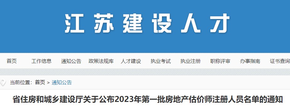 江蘇關(guān)于2023年第一批房地產(chǎn)估價(jià)師注冊(cè)人員名單的通知