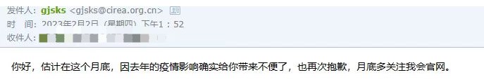 郵件回復:你好,估計在這個月底,因去年的疫情影響確實給你帶來不便了,也再次抱歉,月底多關注我會官網。