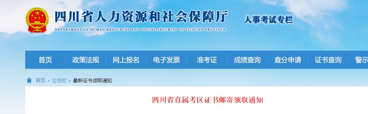 四川省直屬考區(qū)證書(shū)郵寄領(lǐng)取通知
