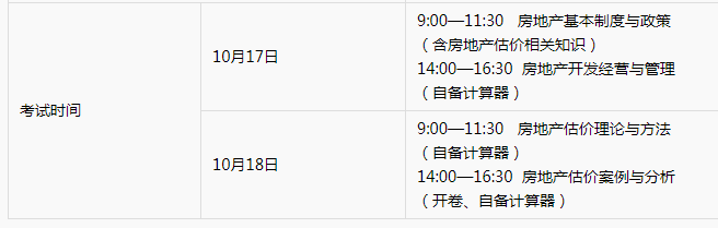 房地產(chǎn)估價(jià)師考試時(shí)間及科目
