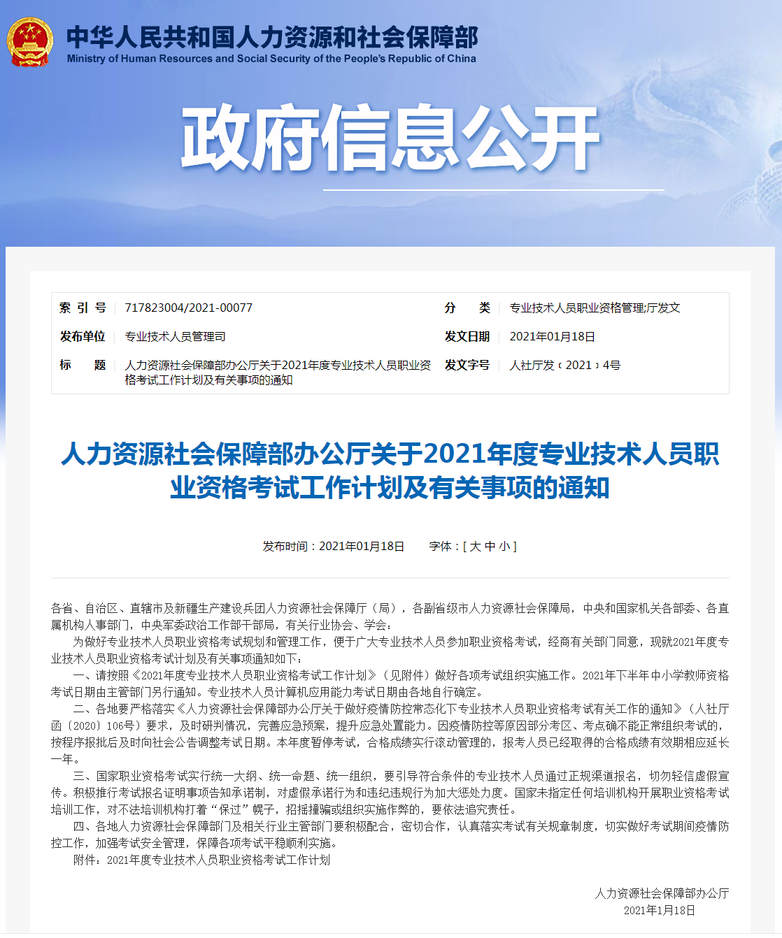 2021年度專業(yè)技術(shù)人員職業(yè)資格考試工作計劃