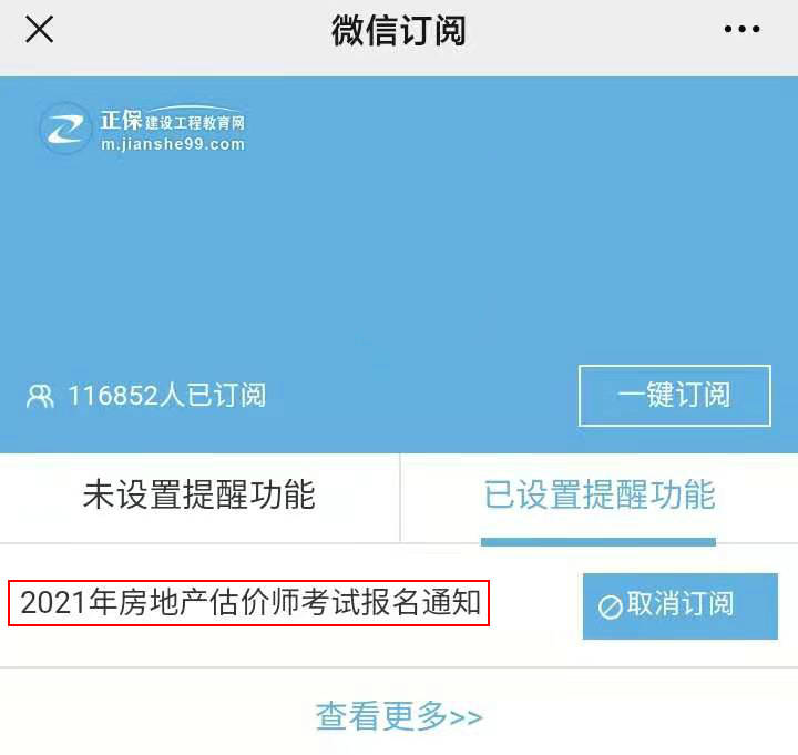 微信訂閱2021年房地產(chǎn)估價師考試報名提醒 及時獲取報考信息!