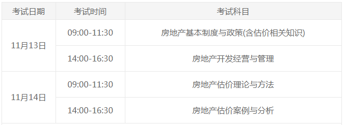 2021年房地產(chǎn)估價(jià)師考試時(shí)間為11月13、14日,具體時(shí)間安排如下:
