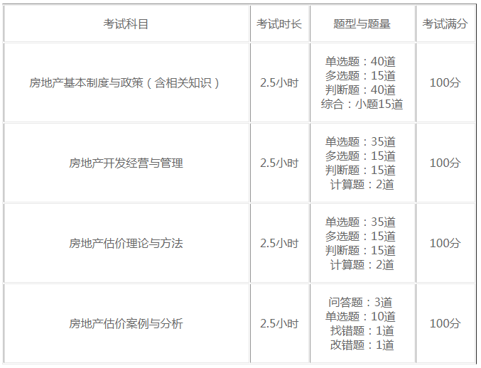 房地產(chǎn)估價(jià)師各科目考試時(shí)間均為2.5小時(shí)。
