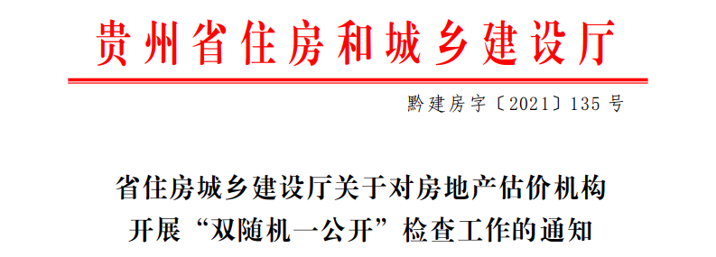 貴州省住房城鄉(xiāng)建設(shè)廳關(guān)于對房地產(chǎn)估價機構(gòu)開展“雙隨機一公開”檢查工作的通知