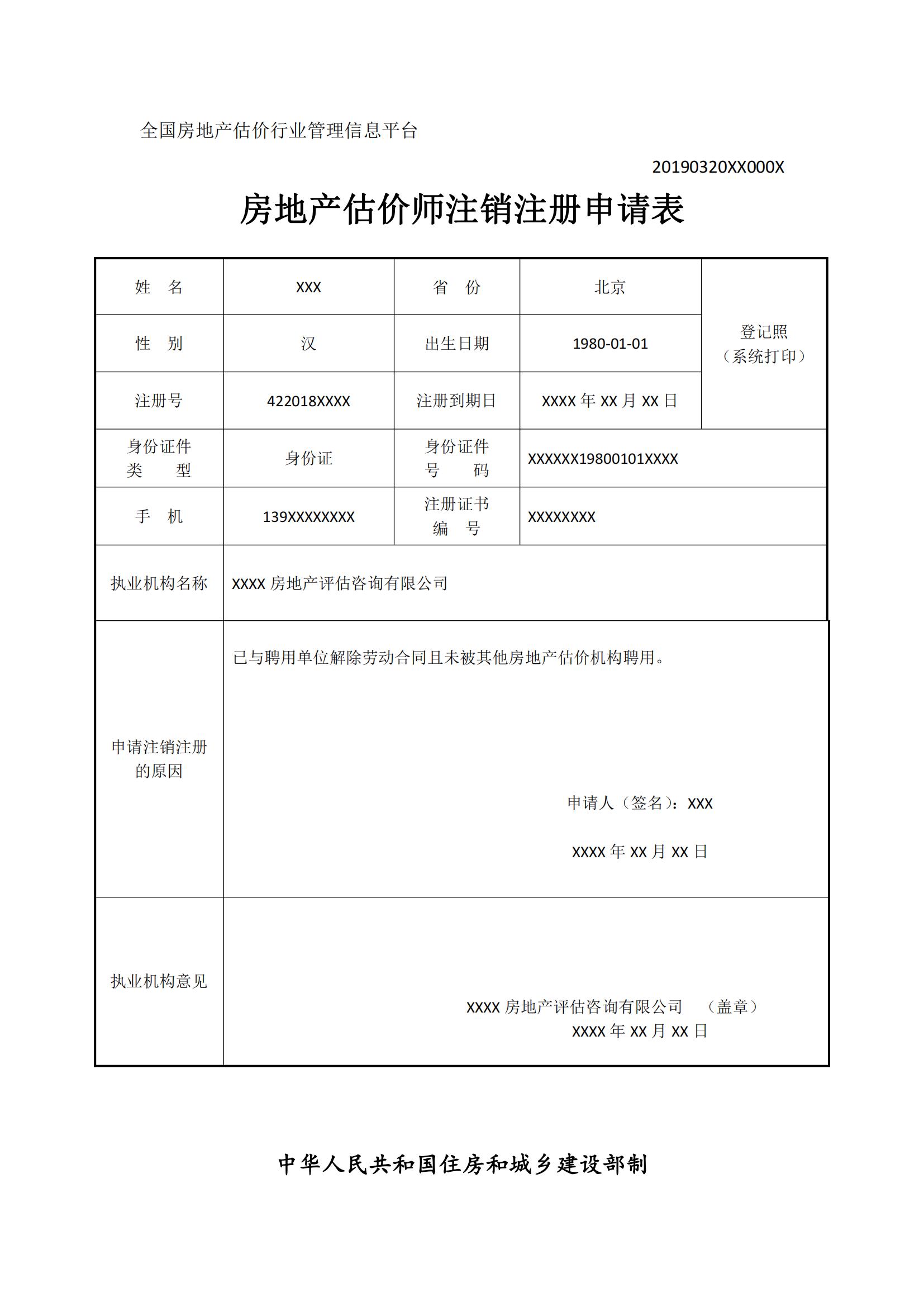 《房地產(chǎn)估價師注銷注冊申請表》原件的掃描件