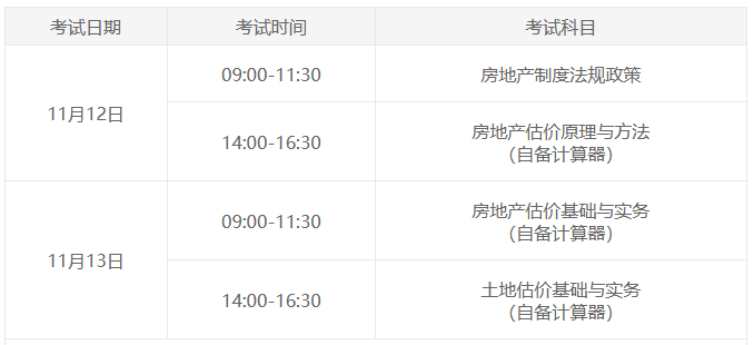 2022年房地產(chǎn)估價師考試時間已確定,為2022年11月12日、13日。