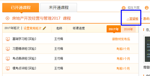 或者從課程目錄進(jìn)入答疑板也可: