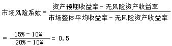 假設(shè)某段時(shí)間內(nèi)房地產(chǎn)業(yè)的預(yù)期收益率為15%,國債的投資收益率為10%,市場整體的平均收益率為20%,則房地產(chǎn)業(yè)的系統(tǒng)性市場風(fēng)險(xiǎn)系數(shù)是( )。