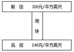 下圖是一塊前后兩面臨街、總深度為175英尺、臨街寬度為30英尺