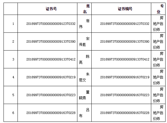 2018年房地產(chǎn)估價(jià)師合格人員名單