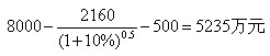改變用途價(jià)值=8000-2160×1.1 0.5-500=5235