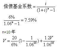 V=20/6%×(1-1.06 -10)+1.2V/1.0610