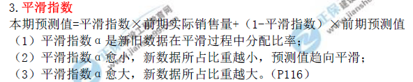 考前半個(gè)月,教材應(yīng)該過(guò)了一遍,課件也聽了好多遍,是不是還是有些考點(diǎn)容易記混淆?考前沖關(guān)寶典最后幫你串一串考點(diǎn),考前沖關(guān)寶典提到了“平滑指數(shù)”,并且列出了計(jì)算公式,本期預(yù)測(cè)值=平滑指數(shù)*前期實(shí)際銷售量+(1-平滑指數(shù))*前期預(yù)測(cè)值。非估價(jià)專業(yè)或者基礎(chǔ)不好的同學(xué),不記住公式很難答對(duì)這道題目,考前沖關(guān)寶典按照章節(jié),列出了??键c(diǎn)和重點(diǎn)難點(diǎn),精簡(jiǎn)書本,考前人手一份,臨上考場(chǎng)不膽怯。