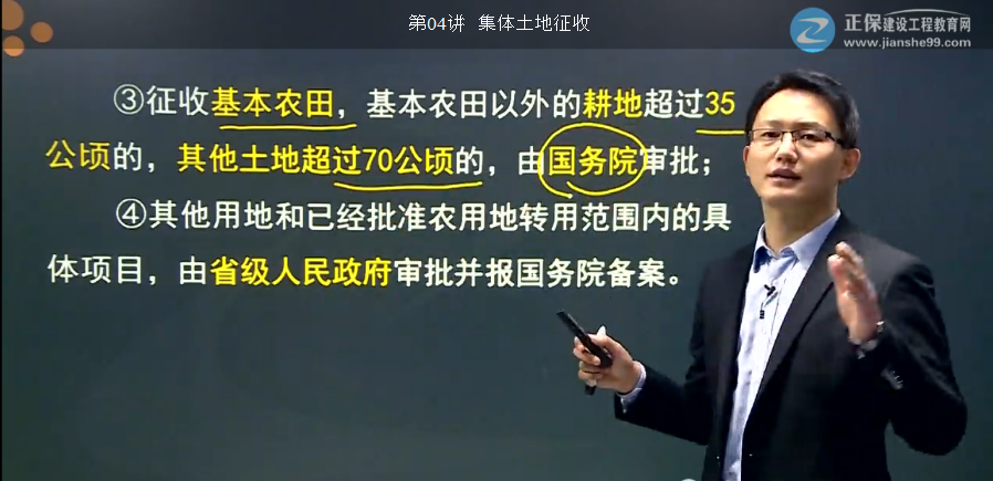 基礎(chǔ)學(xué)習(xí)班第二章第04講中,武勁松老師講解到“征收土地批準(zhǔn)權(quán)限的規(guī)定”,按照順序逐一講解了四個(gè)定義,并且將??键c(diǎn)、可能出題的地方黃色標(biāo)記,醒目的顏色定能讓你在枯燥的學(xué)習(xí)中找到一絲色彩。