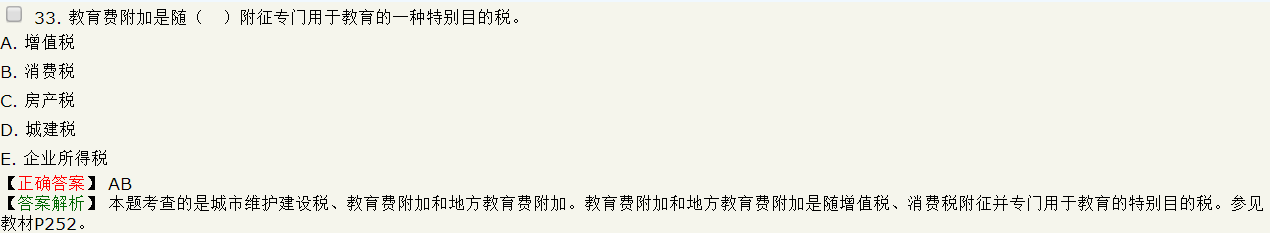 【解析】本題考查的是城市維護建設稅、教育費附加和地方教育費附加。教育費附加和地方教育費附加是隨增值稅、消費稅附征并專門用于教育的特別目的稅,以各單位和個人實際繳納的增值稅、消費稅的稅額為計征依據(jù),分別與增值稅、消費稅同時繳納。參見教材P252。