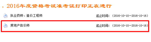 浙江2016年房估產(chǎn)估價(jià)師準(zhǔn)考證打印入口: