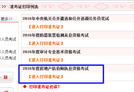 四川2016年房估產(chǎn)估價師準(zhǔn)考證打印入口: