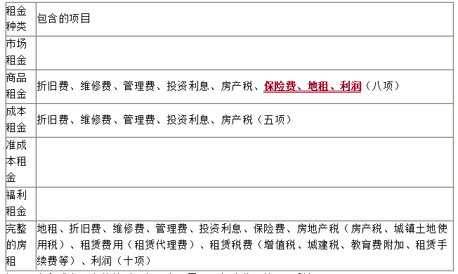 商品租金和成本租金的差別,多3個(gè)項(xiàng)目——保險(xiǎn)費(fèi)、地租、利潤(rùn)。
