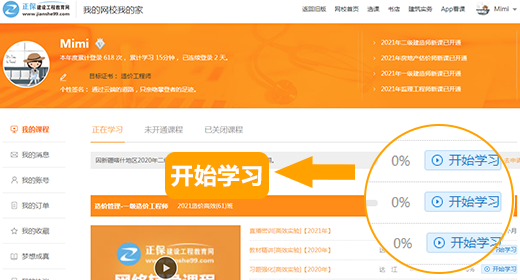 使用在網(wǎng)校注冊的學員代碼、密碼,通過首頁學員登錄框進入“我的網(wǎng)校我的家”開始學習。