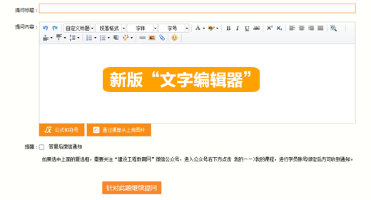 新版的答疑板優(yōu)化了學員提問時的“文字編輯器”,通過升級純文本編輯、圖片插入、公式輸入等功能讓學員體驗更順暢、方便的答疑服務!