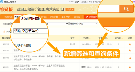 改版后的答疑板,方便學員按照時間、章節(jié)、標題等不同條件來查看自己想要查看的問題,尤其是考生普遍遇到的熱門問題,可以利用搜索來快速找到答案,節(jié)省提問和答疑時間,進而提高學習效率。