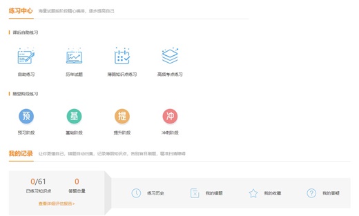 針對學員在學習中的疑問,網(wǎng)校對相關班次學員提供了聽課記錄、答疑記錄、練習記錄服務。