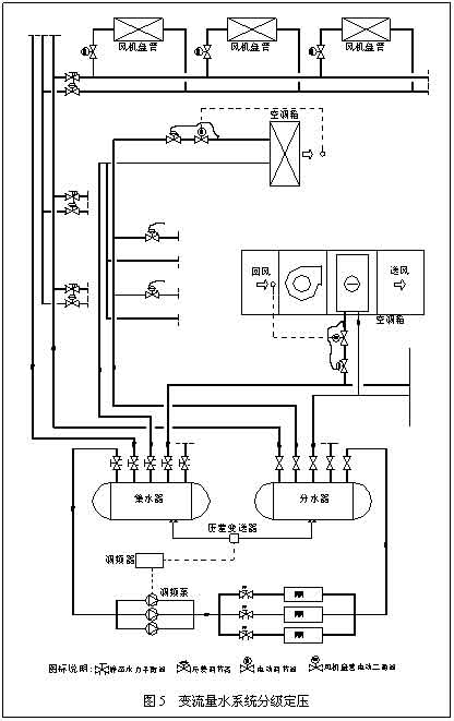 對于一個實際的變流量系統(tǒng),定壓差技術(shù)的應(yīng)用原則是:分系統(tǒng)定壓、分級定壓。