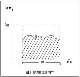 采用調(diào)節(jié)型電動閥,通過對流量的連續(xù)調(diào)節(jié)來滿足末端設(shè)備負荷變化的要求。如圖3所示的空調(diào)箱系統(tǒng)溫度調(diào)節(jié)即為連續(xù)調(diào)節(jié),其平均流量為:Q平均=∫t1t2Q(x)dx/(t2-t1)。這種調(diào)節(jié)方式適用于調(diào)節(jié)精度要求較高的系統(tǒng)。
