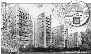 23日,負(fù)責(zé)“海德公園一號(hào)”樓盤項(xiàng)目和內(nèi)部裝飾的“康迪和康迪”設(shè)計(jì)公司主管尼克·康迪稱:“這將是全球最佳而又最安全的住宅,它專門為那些超級(jí)富有的‘世界級(jí)大款’而建!
