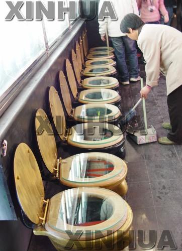 12月10日,一名保潔人員在“馬桶”座椅旁邊打掃衛(wèi)生。