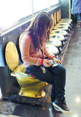 12月10日,在南京一購物廣場一位顧客坐在“馬桶”座椅上休息。