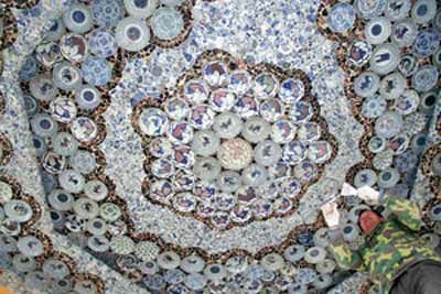林小姐說,張先生認(rèn)為古瓷片貼在墻上是給了古瓷片第二次生命。而那些裝飾在墻上、屋頂上的“完整瓷器”其實原是殘缺的,只是損壞的部分被巧妙地隱藏了。而將石雕鑲嵌在墻上,無非是換了種陳列方式,希望用藝術(shù)的神奇讓這些本來就已“受傷”的瓷器,重新面對世人。