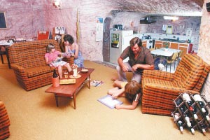 澳大利亞號稱“坐在礦車上的國家”,挖地洞、找寶貝向來是家常便飯。不過找蛋白石卻是個耐心活兒,講究的是持久戰(zhàn),這就需要淘寶者在當?shù)匕布衣鋺。但是當(shù)貧夂蚴謵毫,夏季地表溫度總?0攝氏度以上,冬天又寒風刺骨。于是有人想出將廢棄的礦洞改造成居室的主意。這樣一來,獨一無二的地下城就誕生了。