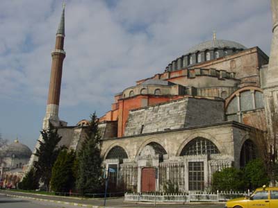 6世紀(jì),查士丁尼大帝將它改建成拜占庭式的建筑,并且把它作為基督教教堂,到了15世紀(jì),奧斯曼土耳其蘇丹穆罕默德又把它改成清真寺。不過教堂頂部的基督教壁畫還在,拜占庭式的馬賽克畫也保留了。