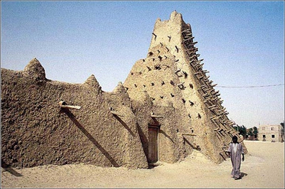 廷巴克圖位于沙漠中心一個(gè)叫做“尼日爾河之岸”的地方,距尼日爾河7公里。它建于公元1100年,它的輝煌歷史起源于一條重要的貿(mào)易通道——鹽路。這條路橫貫撒哈拉沙漠,跟絲綢之路齊名。阿拉伯商人趕著駱駝隊(duì)從開羅或的黎波里一路跋涉而來,廷巴克圖則是這一千多公里風(fēng)餐露宿的終點(diǎn)。