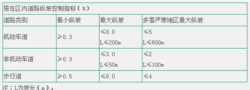 3、居住區(qū)內(nèi)道路縱坡規(guī)定,應(yīng)符合下列規(guī)定: