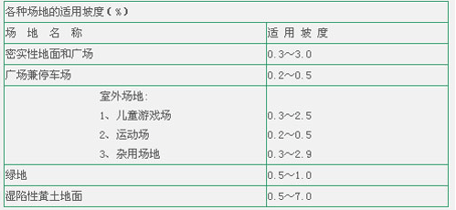 2) 各種場地的適用坡度,應(yīng)符合以下圖表的規(guī)定;