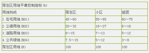 2)居住區(qū)內(nèi)各項用地所占比例的平衡控制指標,應(yīng)符合以下圖表中的規(guī)定。
