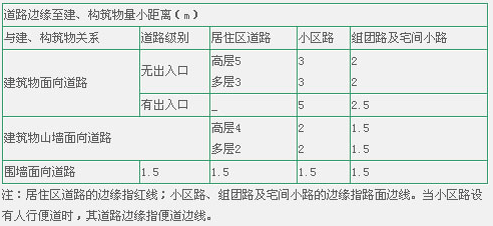 注:居住區(qū)道路的邊緣指紅線;小區(qū)路、組團路及宅間小路的邊緣指路面邊線。當小區(qū)路設(shè)有人行便道時,其道路邊緣指便道邊線。