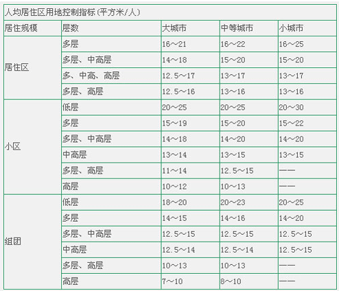 3、人均居住區(qū)用地控制指標,應(yīng)符合以下圖表中的規(guī)定。