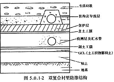 5.0.1 本條要求填埋場(chǎng)必須防止對(duì)地下水的污染。不具備自然防滲條件的填埋場(chǎng)必須進(jìn)行人工防滲。