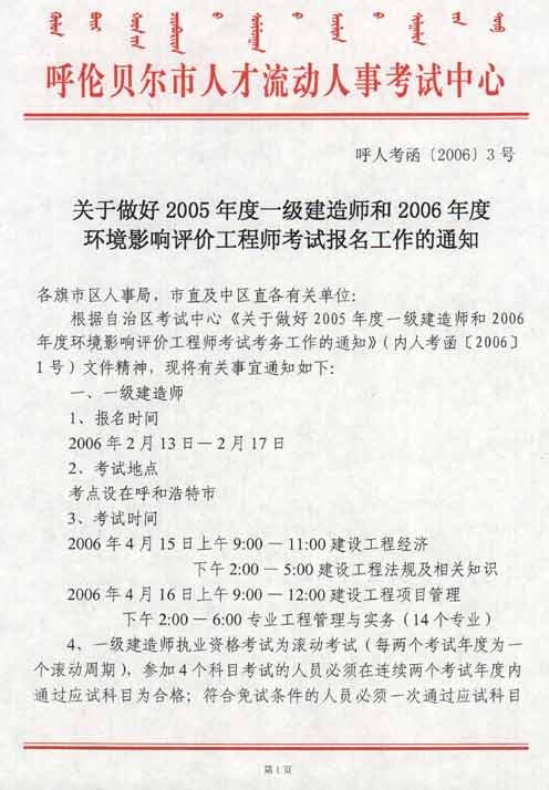 [呼倫貝爾]05年一級建造師考試考務(wù)工作